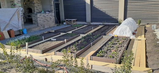 Нарезаем в размер, крепим шарниры, собираем грядку